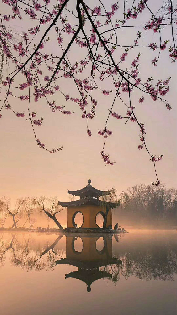 数点红花挂细枝,烟波渺渺柳条丝。