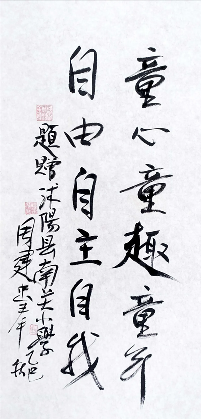 周教授高度肯定了沭阳县南关小学的童文化建设,在研讨活动结束返回南通后,仍饱蘸深情,挥毫泼墨,为南关小学留下两幅珍贵墨宝。这份“会后寄赠”的用心,比当场挥毫更显珍贵——它意味着南关小学的“童文化”不是“一时惊艳”,而是真正触动了教育专家的内心,成为值得被铭记、被传播的教育样本。